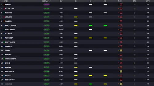 Lando Norris setzte ein Ausrufezeichen, indem er im dritten freien Training (FP3) beim Großen Preis von Mexiko-Stadt vor Lewis Hamilton und George Russell die Bestzeit fuhr. Wie so oft beim letzten Training des Wochenendes ließen sich Teams und Fahrer Zeit, aus der Boxengasse zu kommen.