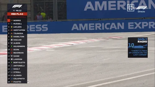 Bei Carlos Sainz's Williams löste sich ein Teil des Heckteils und lag auf der Fahrbahn, was zur Folge hatte, dass die rote Flagge gezeigt und die Fahrer zurück in ihre Garagen gebracht wurden.
