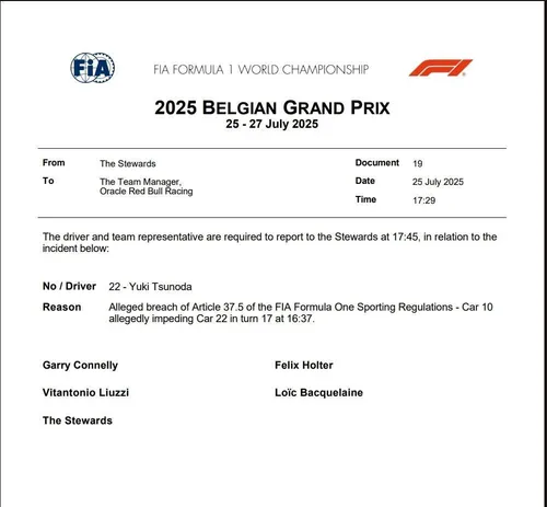 Yuki wird tatsächlich um 17:45 Uhr Ortszeit vor den Stewards in Spa-Francorchamps wegen eines angeblichen Behinderungsvorfalls mit Pierre Gasly in Kurve 17 während des Sprint-Qualifyings erscheinen müssen.